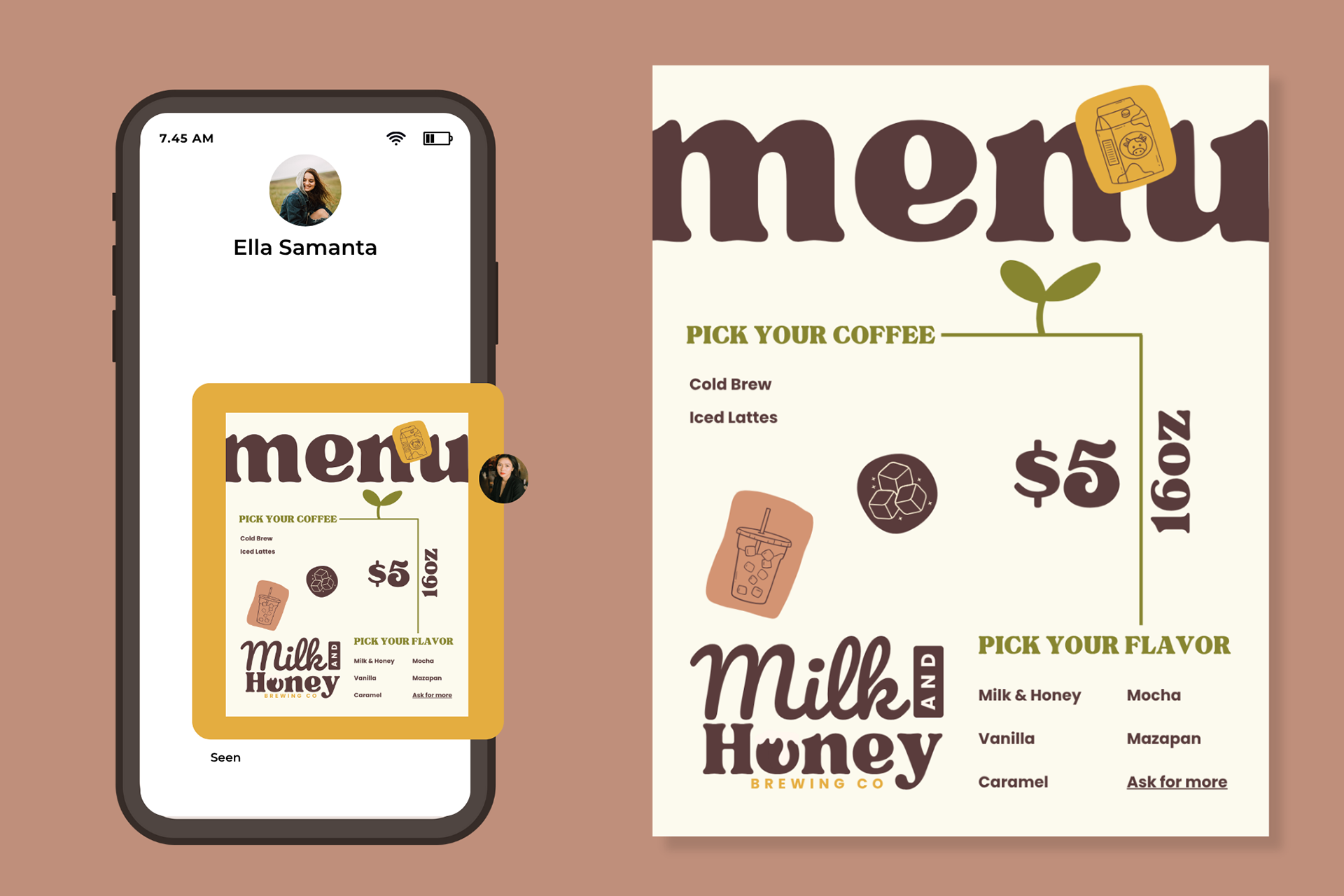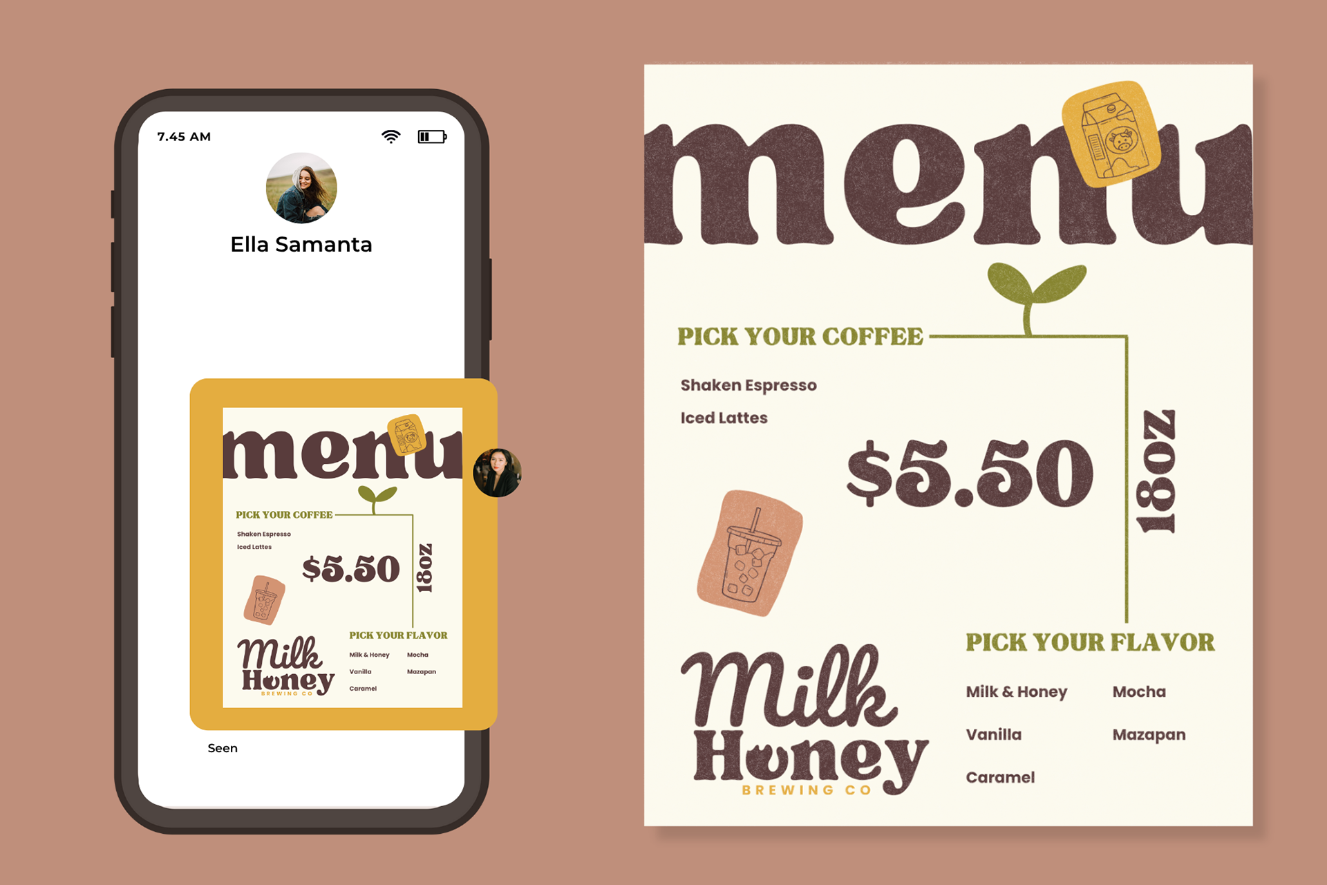 I created the visual identity for the brand, including the logo, color palette, typography, and overall style. I also designed a minimal, shareable menu to highlight the early drink offerings. As the business grows, I’ll continue developing branded assets such as the truck design, website, signage, and marketing materials.